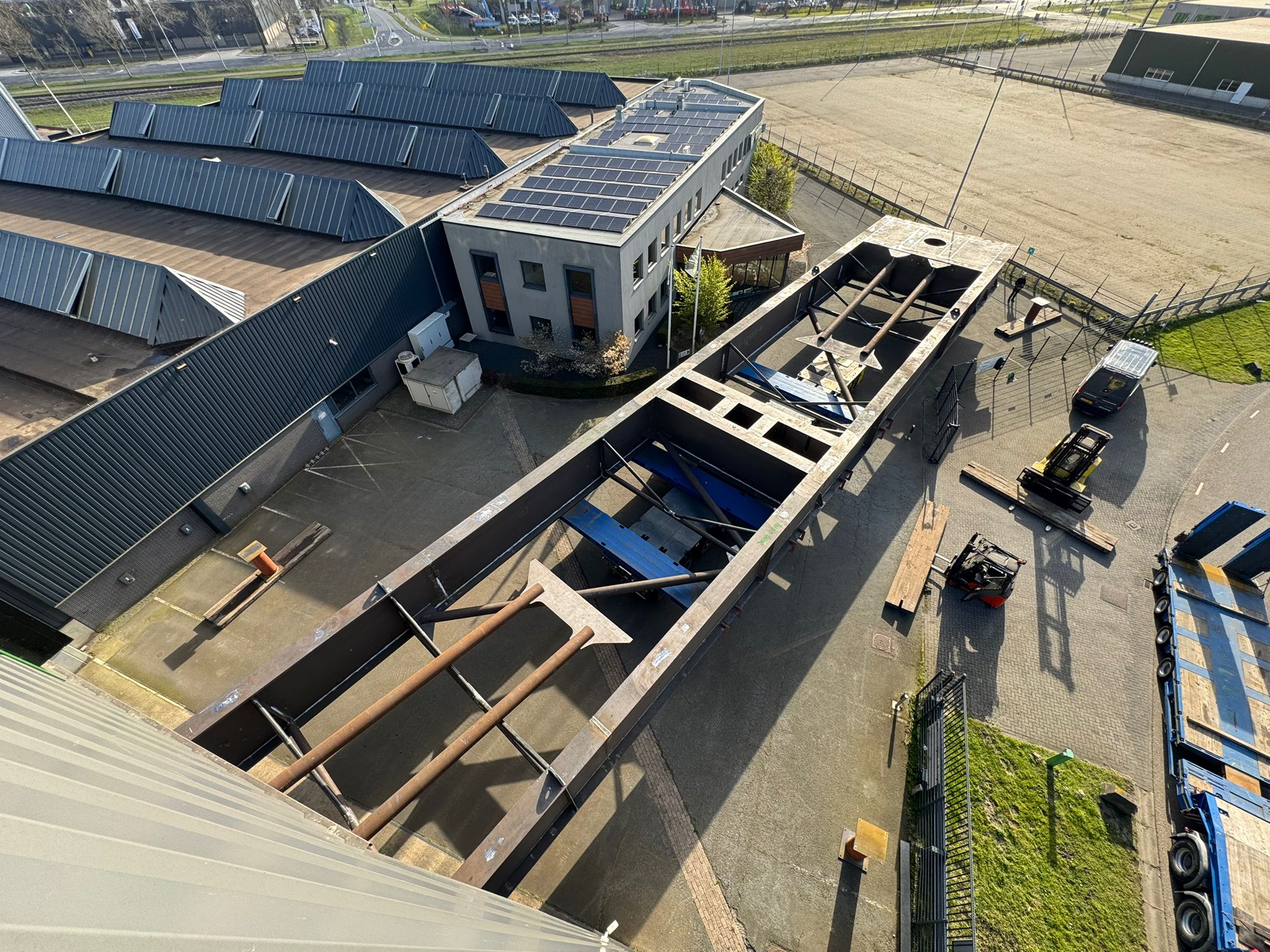 During the Easter weekend, we successfully carried out the relocation of the first of four grillages at the construction facility of Wimorost in Moerdijk, moving it from the fabrication hall.